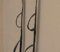 These handles are sewn into place to provide handgrips when exiting backwards down a ladder, perhaps through a window where there is no other means of stabilising oneself.